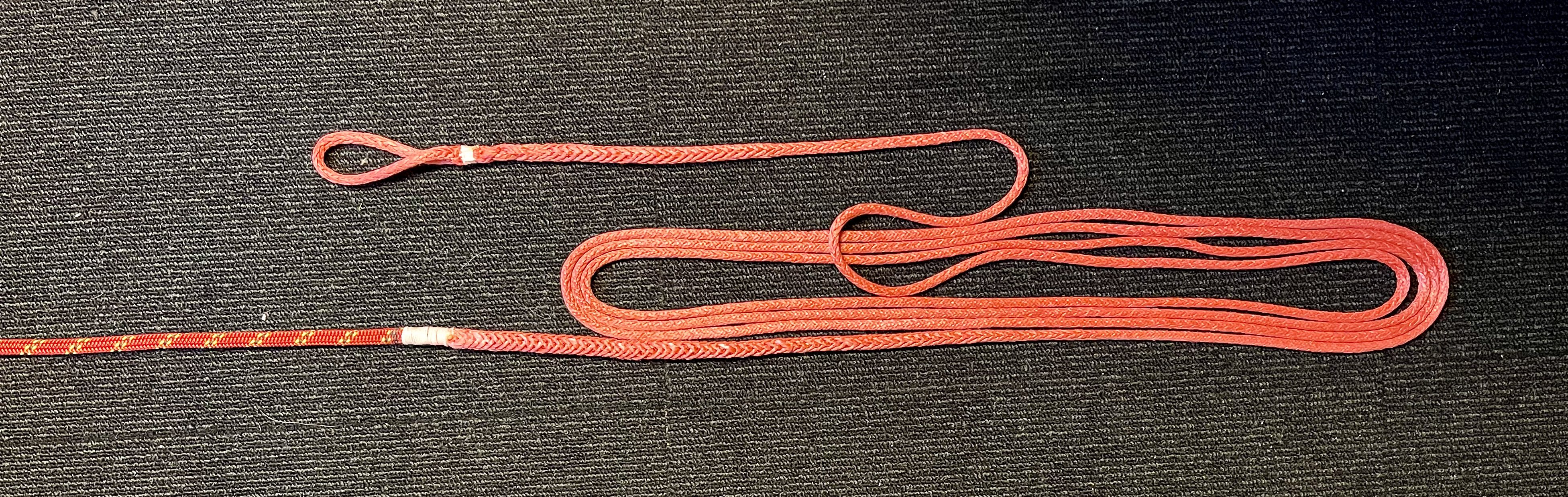 Skøderne er 8 mm Dyneemaskøder og forlænger stroppen er lavet af en 6 mm Dynex.